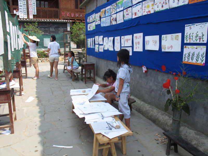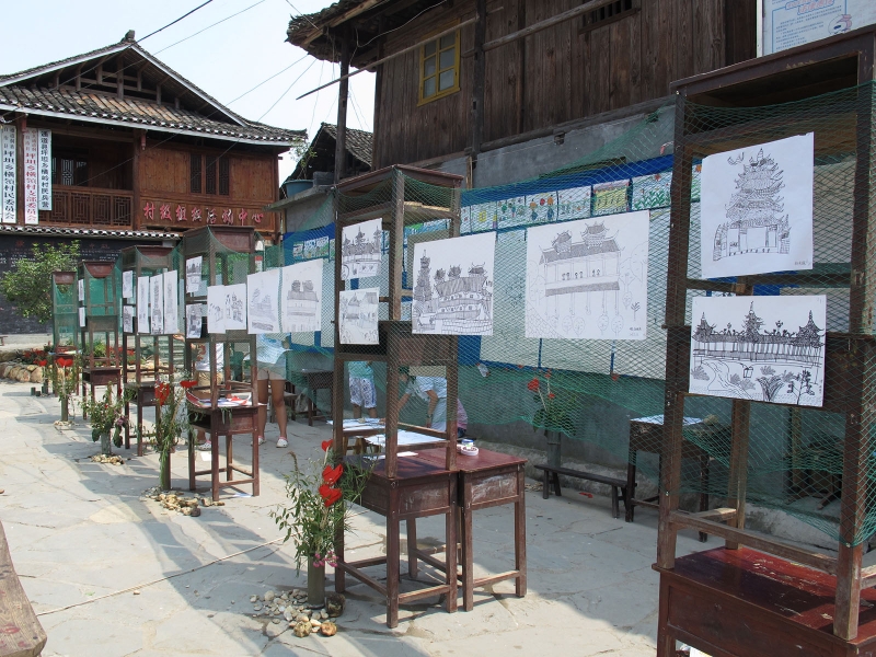 安晟喜博士与香港理工的一批具备商业管理背景的同学,以儿童的视角设计参与交互式地图,纵向贯通侗族建筑、音乐等地域元素。以当地儿童之手画出侗寨的美丽风光。
